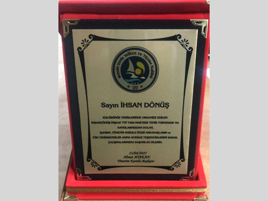 Asbaşkanımız Turnuvamıza Ana sponsor olarak destek veren İHSANDÖNÜŞ İNŞAAT sayın İHSAN DÖNÜŞ’E teşekkür plaketi takdim ederek, kulübümüze ve tenis sporuna desteklerinin devamını diledi.
